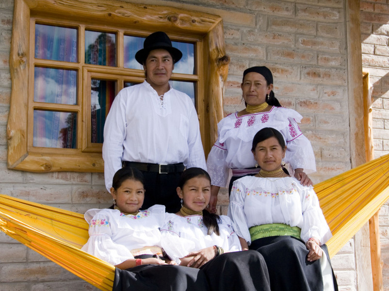 Morgens werden Sie im Hotel abgeholt und fahren in ca. 2 Std. auf die Nordhalbkugel in die Kleinstadt Cotacachi. Nachdem Sie sich in Ihrer Unterkunft einer indigenen Tourismukooperative ECPO028 eingerichtet haben, geht es weiter nach Otavalo ECAK012, wo Sie ausreichend Zeit haben, den großen, bunten Samstagsmarkt auf eigene Faust zu erkunden. Am Nachmittag unternehmen Sie einen Ausflug mit englischsprachigem Guide in die umliegenden ländlichen Dorfgemeinschaften. In Carapuelo sehen Sie traditionelle Webstühle, und im kleinen Dorf Peguche wandern Sie durch den Eukalyptuswald bis zum Wasserfall ECAK014 und besuchen eine bekannte Folklore Musikgruppe, bei der Sie viel über andine Instrumente und Ihre Verwendung erfahren.