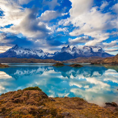 Drei nadelartige Granitsäulen "Torres del Paine", die sich fast senkrecht über die patagonische Steppe erheben, sind das Wahrzeichen des vielleicht schönsten Nationalparks Südamerikas. Glitzernde, türkisfarbene Seen, wilde Flüsse, in Kaskaden herabstürzende Wasserfälle, zerklüftete Gletscher, dichte Wälder und eine reichhaltige Fauna und Flora sorgen wir unvergessliche Naturerlebnisse.