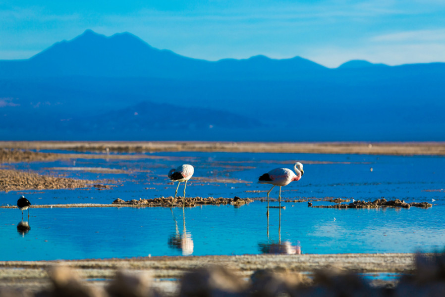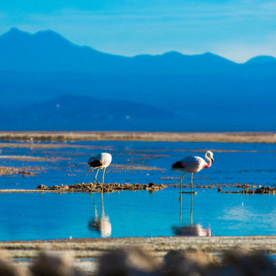 Am Nachmittag unternehmen Sie einen Ausflug durch die trockene Wüstenlandschaft zum riesigen Salzsee Salar de Atacama CLAK046. Bei der Laguna Chaxa können Sie eine Vielzahl wunderschöner Flamingos beobachten.
