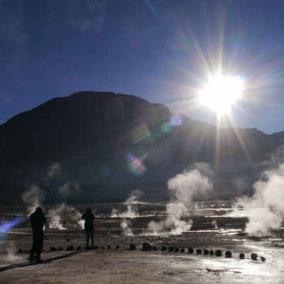 Die El Tatio Geysire befinden sich auf 4.320 Meter Höhe ca. 95 km nördlich von San Pedro de Atacama. Der Besuch des weltweit drittgrößten Geysirfelds ist ein Erlebnis der besonderen Art. Man muss schon früh morgens (gegen 04:00 Uhr) ins San Pedro starten, um die rauchenden Dampfsäulen bei morgendlich kühlen Temperaturen von -5°C in der aufgehenden Morgensonne emporsteigen zu sehen.